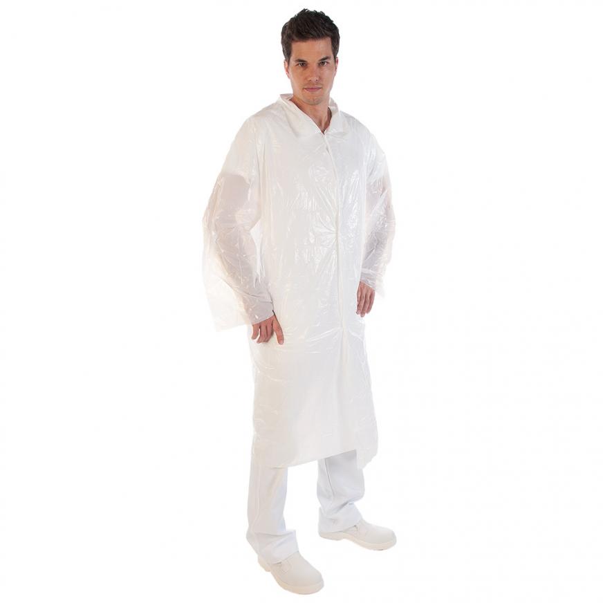 Manteau de visiteur PE blanche - 20 my - avec boutons pression - 300/carton